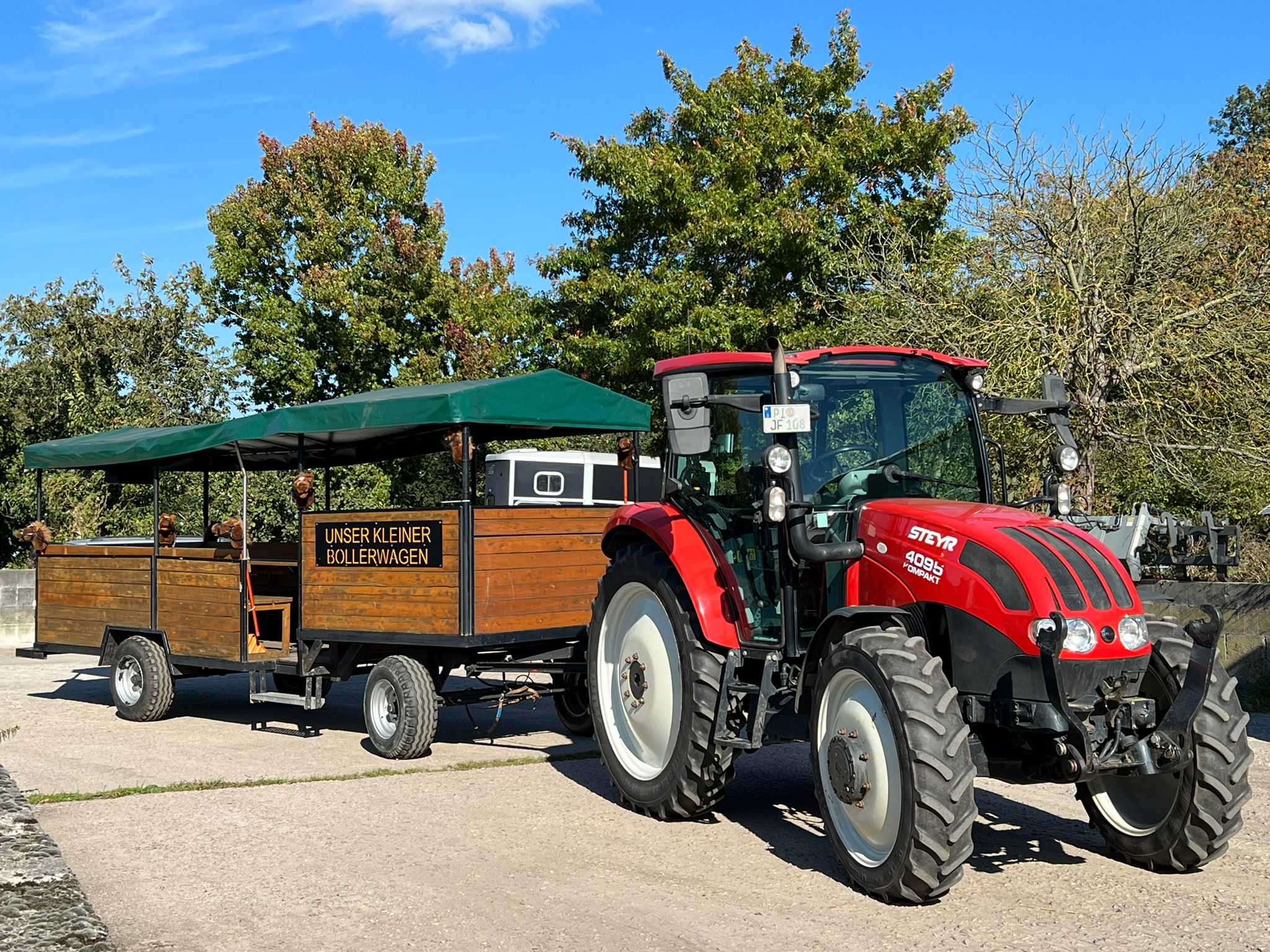 Wir konnten uns den Bollerwagen von Kai Ellerbrock und den Trecker von Jan Flessau leihen