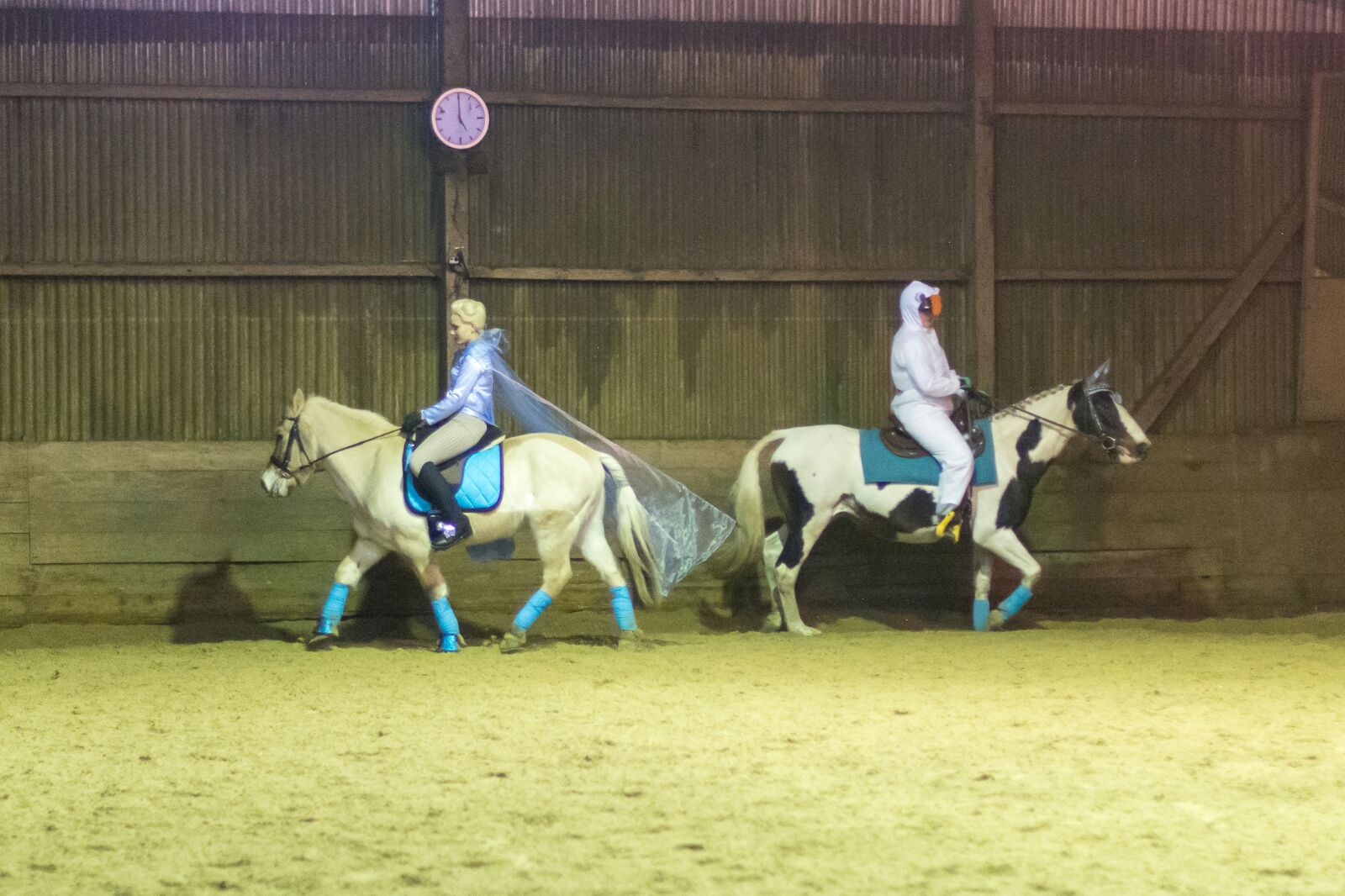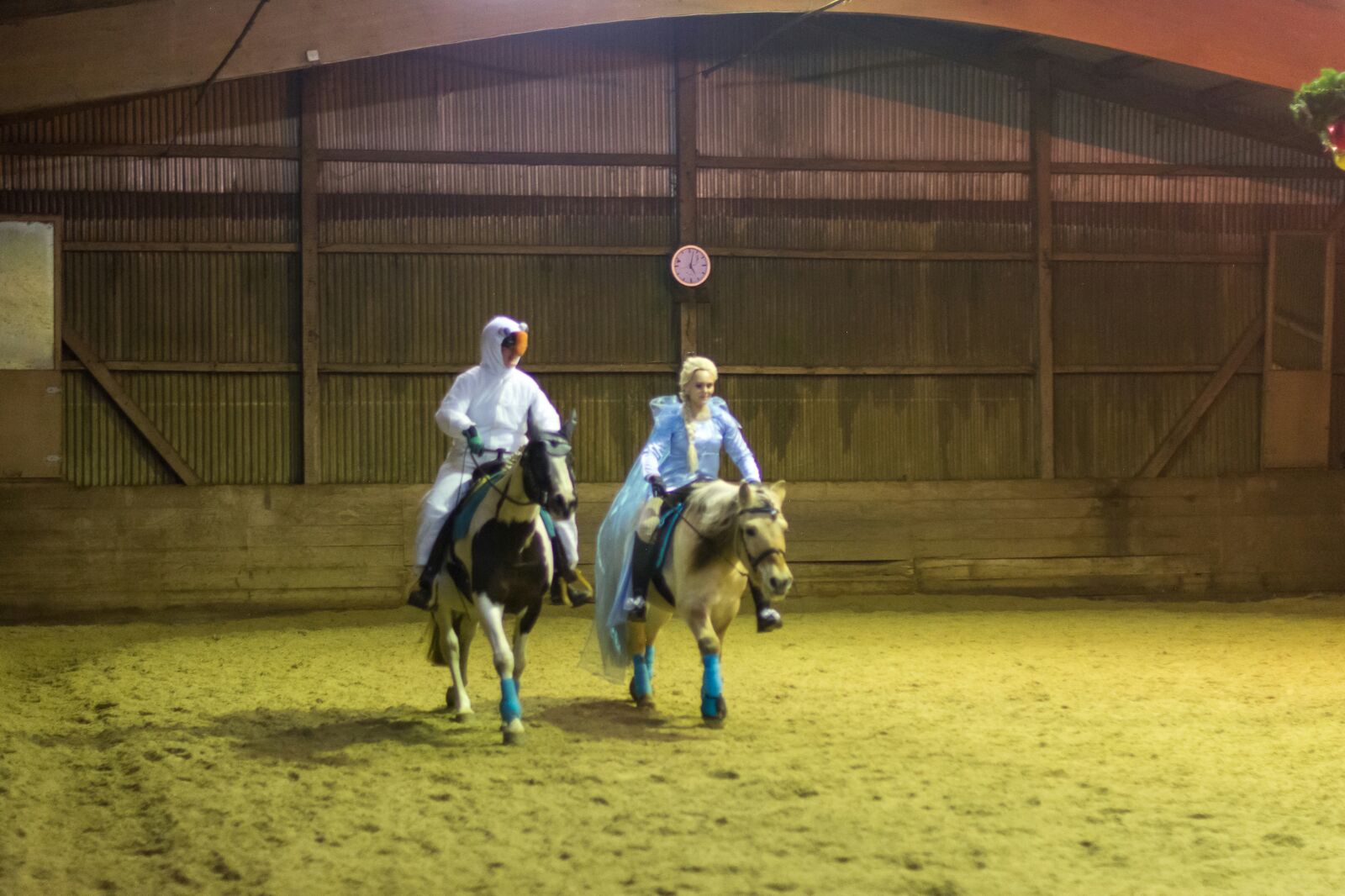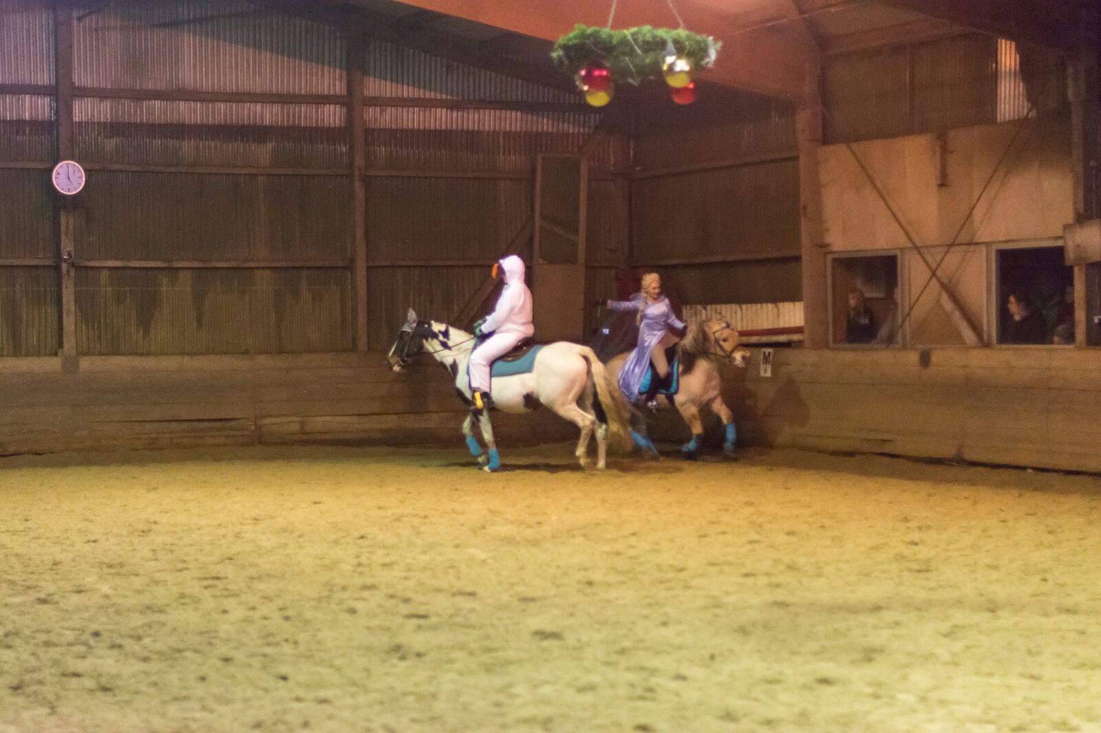Wir haben Bibi und Tina III auf DVD geschaut. Um 17:00 Uhr gab es eine kleine Überraschung in der Reithalle, wo uns eine Weihnachtsquadrille vorgeführt wurde.